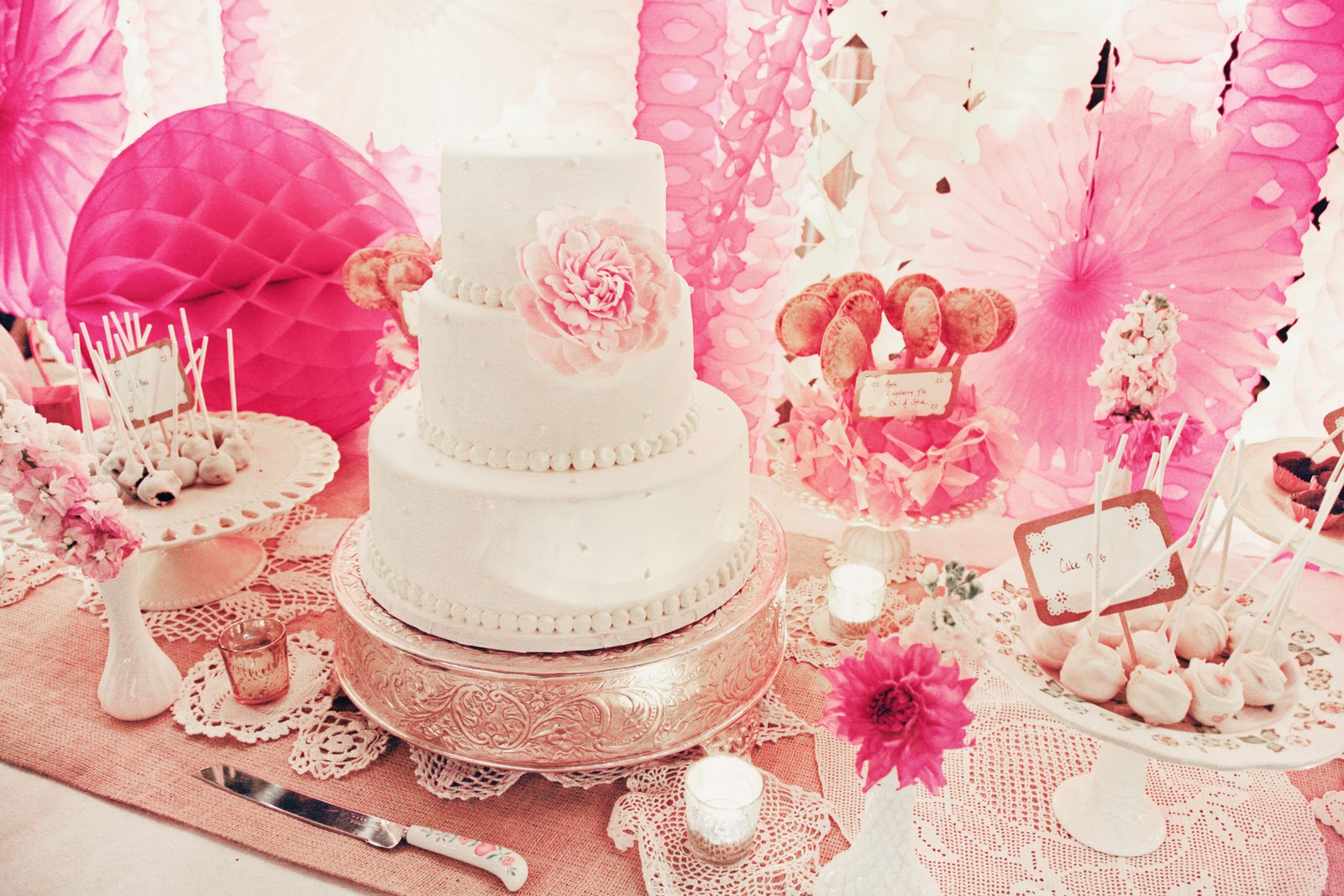 Pour le livre d'or, les mariés ont suggéré aux invités d'écrire leur mots sur des coeurs en dentelle de papier qu'ils fixaient à un fil avec une pince à linge. la mariée a choisi une table des desserts incroyables avec un large choix de gâteau. la décoratrice a parfait la présentation en ajoutant des boules en papier à suspendre et des rosaces nids d'abeille.
